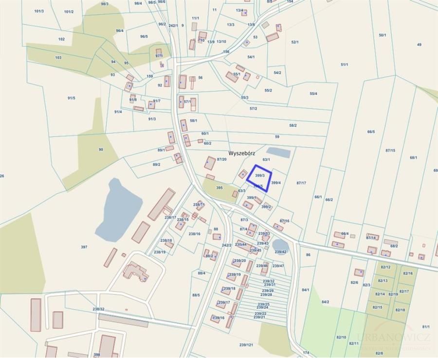 Działka o powierzchni 1232 m2 położona w miejscowości Wyszebórz, dla której zostały wydane warunki zabudowy.