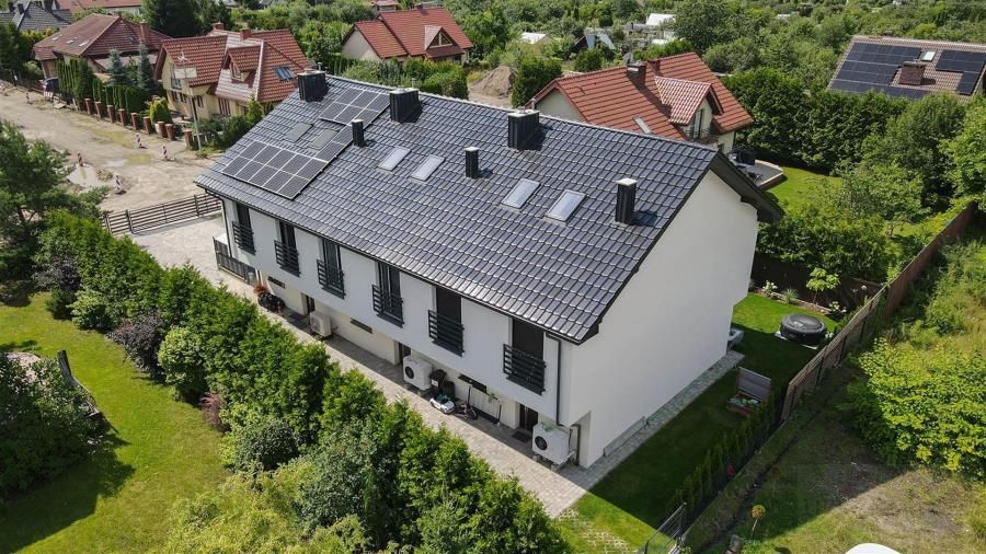 Ogrzewanie i ciepła woda - pompa ciepła; w całym budynku instalacja ogrzewania podłogowego.
