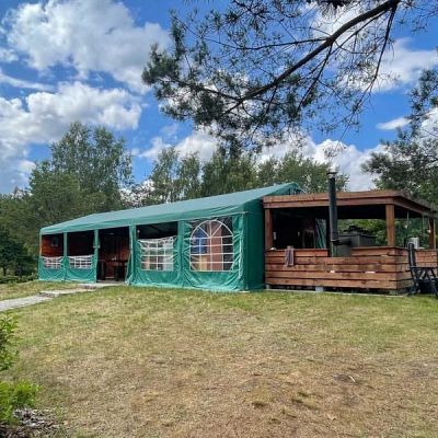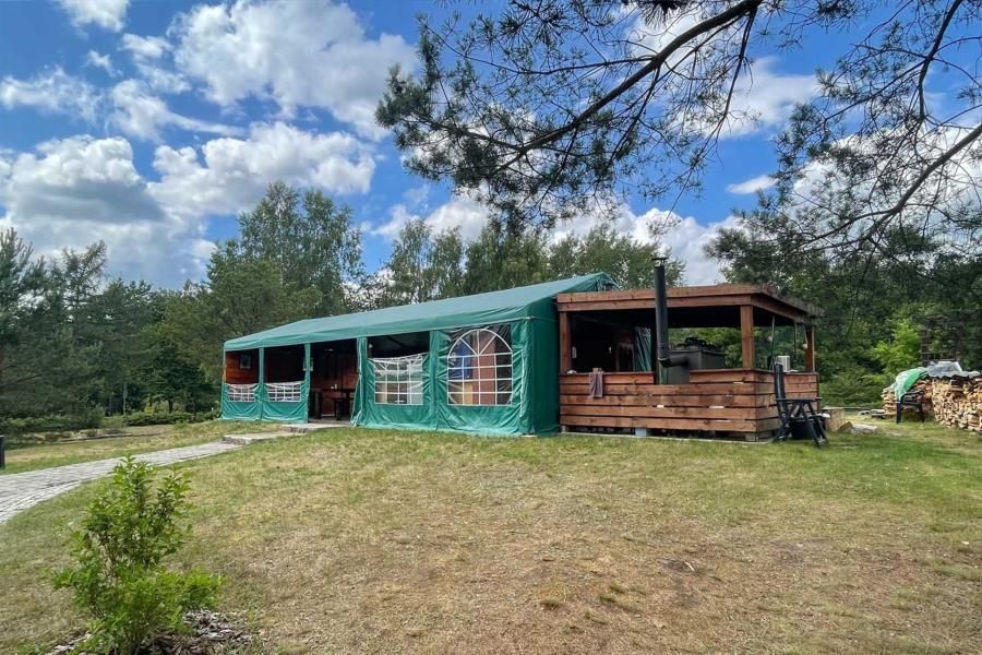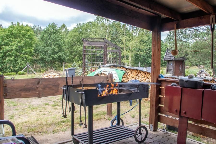 Media: energia - panele fotowoltaiczne (moc 3,6 kW), woda - własna studnia głęb. 60 m, zbiornik bezodpływowy.