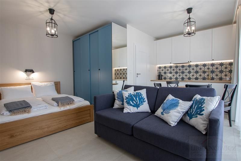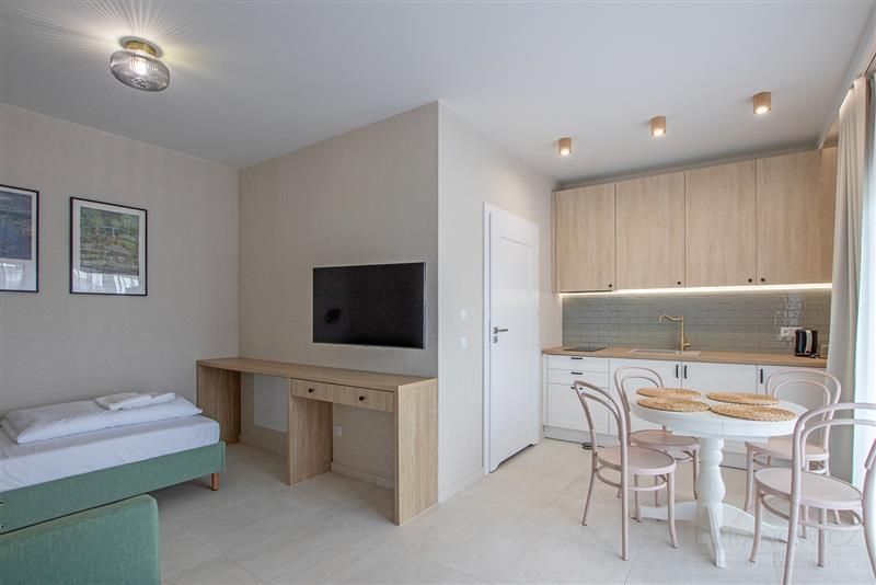 Apartamenty o wysokim standardzie wykończenia są w pełni umeblowane i przygotowane do zamieszkania.