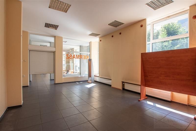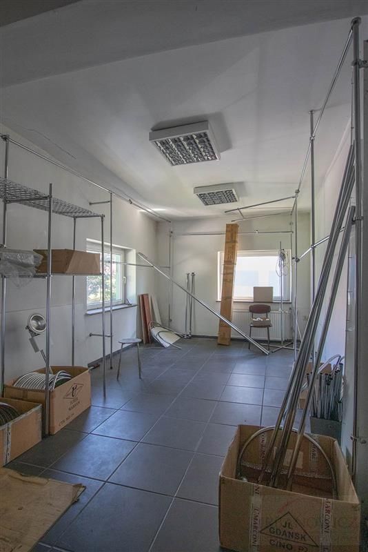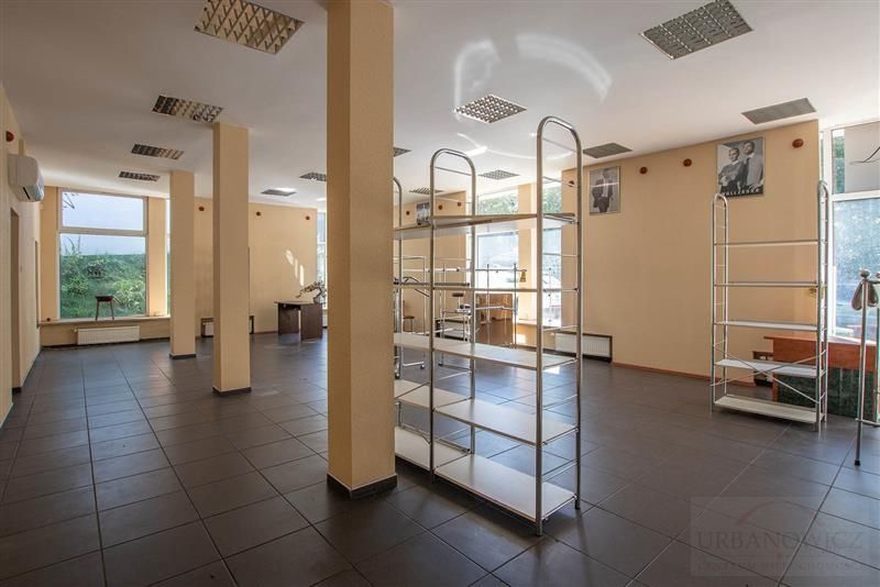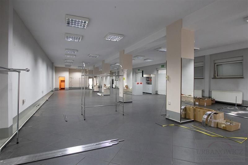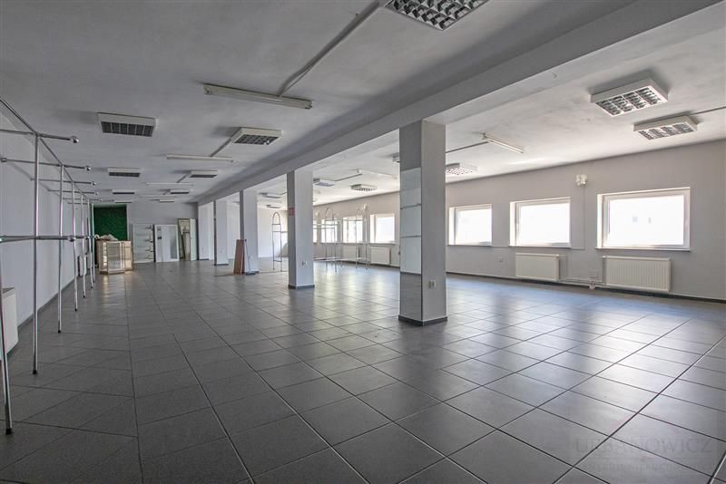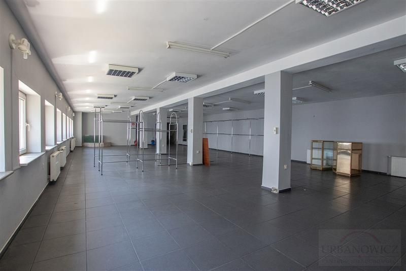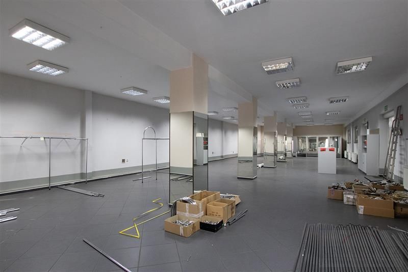 Okna i witryny wystawowe PCV, posadzki - terakota, oświetlenie sufitowe.