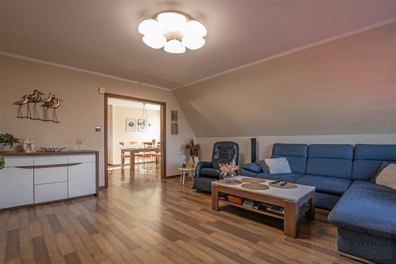 Mieszkanie z odrębnym wejściem z terenu posesji, okna PCV, ściany gładź malowana, panele podłogowe i terakota, łazienka z kabiną.