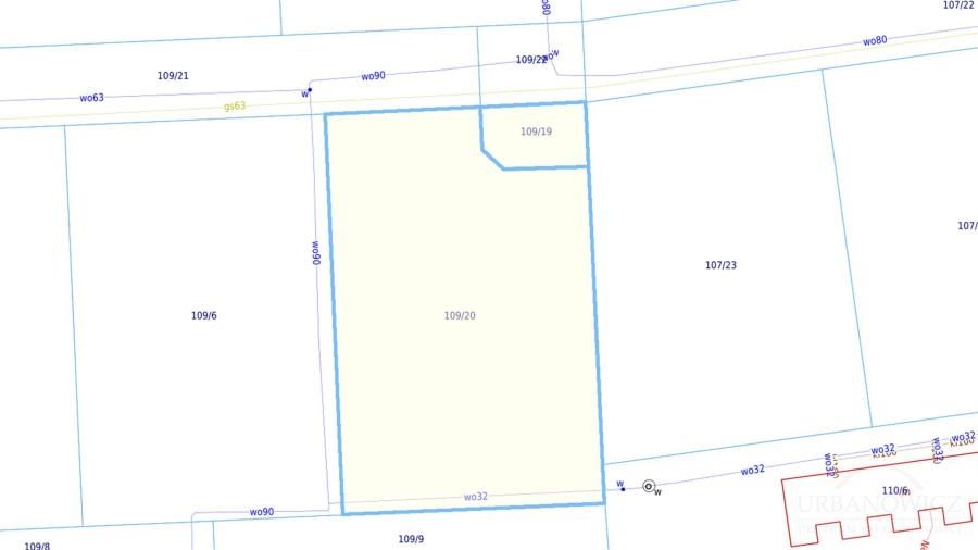 Media: gaz, wodociąg - w drodze gminnej przy działce; energia - na sąsiedniej działce.