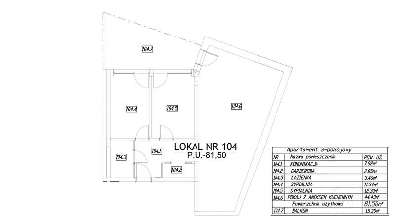 Powierzchnia 81,50 m2, taras o powierzchni 15,39 m2.
