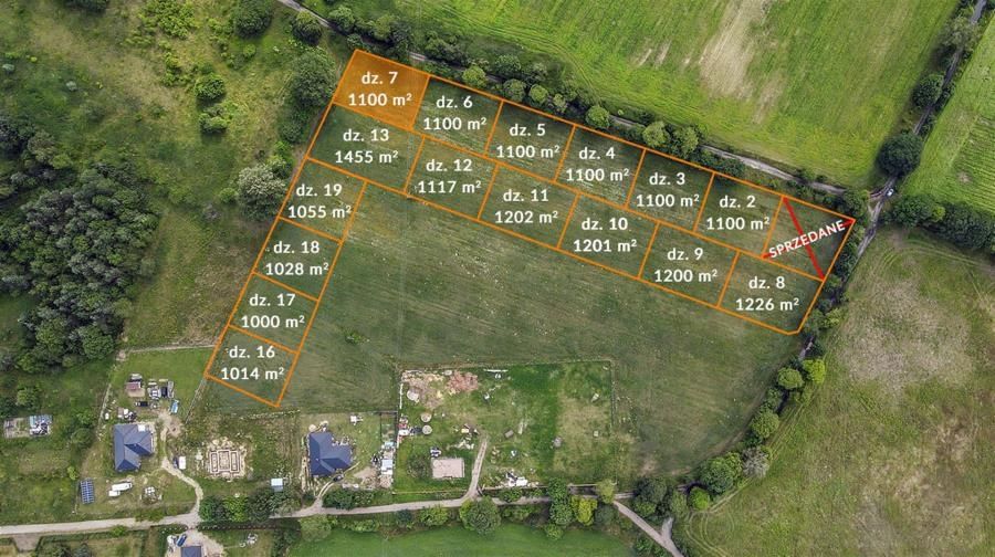 Możliwość kupna sąsiednich działek o pow. od 1000 m2 do 1455 m2.