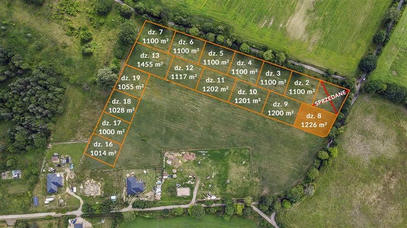 Możliwość kupna sąsiednich działek o pow. od 1000 m2 do 1455 m2.