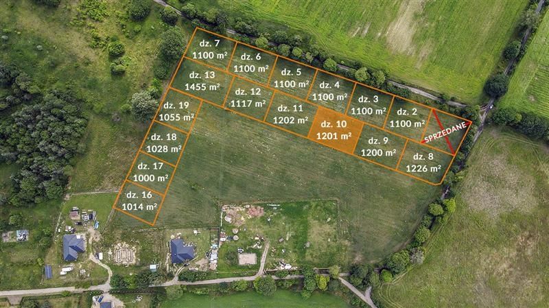 Możliwość kupna sąsiednich działek o pow. od 1000 m2 do 1455 m2.