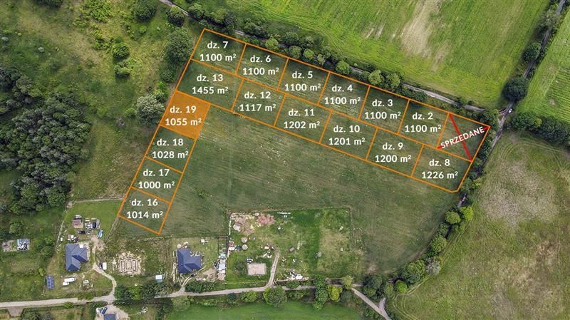 Możliwość kupna sąsiednich działek o pow. od 1000 m2 do 1455 m2.