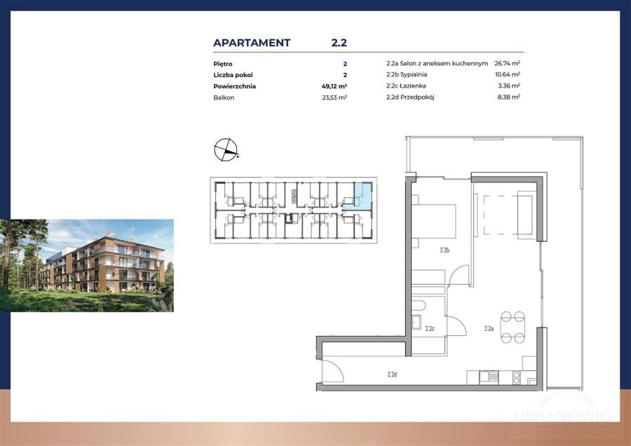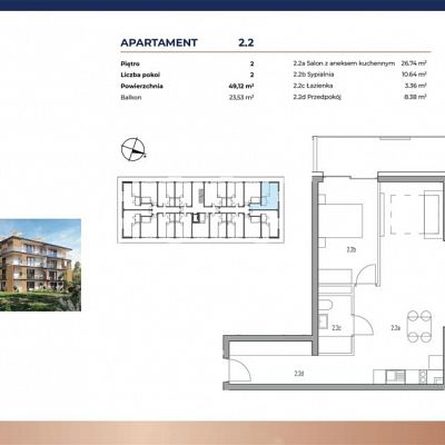 Oferta dotyczy apartamentu 2.2 położonego na 2. piętrze.