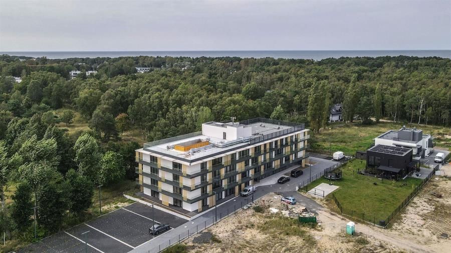 Inwestycja została opracowana z dokładnością w każdym szczególe. Bryła budynku idealnie wkomponowuje się w leśne i wydmowe otoczenie, zyskując dzięki temu przyjazny, nadmorski klimat. Połączenie stylowej architektury oraz ekskluzywnych wnętrz to sztuka zachowania wysokiego standardu przy optymalnym wykorzystaniu przestrzeni.