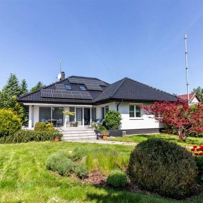 Okna PCV, ogrzewanie gazowe, dodatkowo klimatyzacja. Na dachu instalacja fotowoltaika.