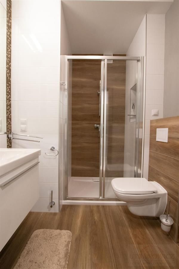 W łazience - kabina natryskowa, kompakt, przyłącze do pralki.