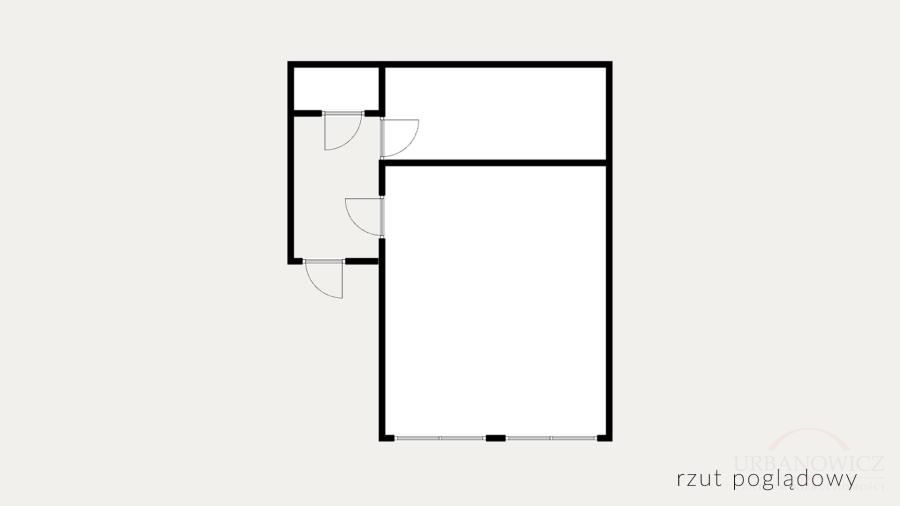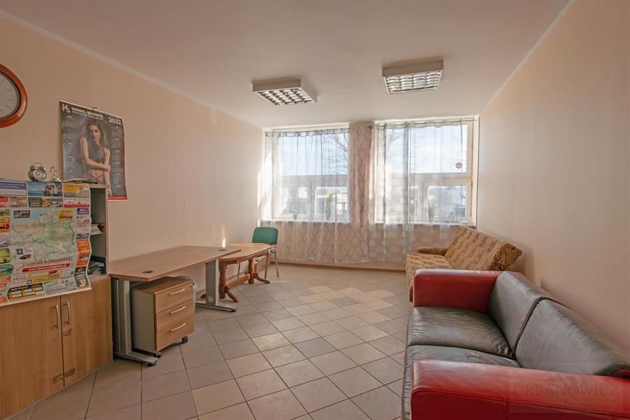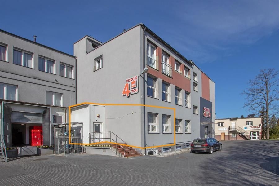Rozkład pomieszczeń: 2 sale biurowe, przedpokój z aneksem kuchennym, łazienka.