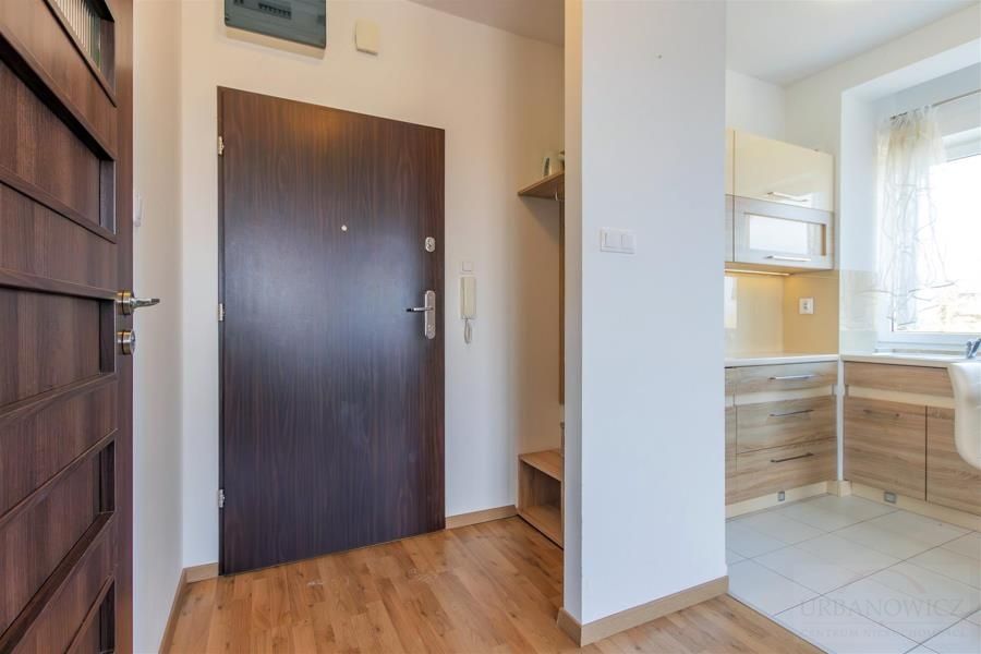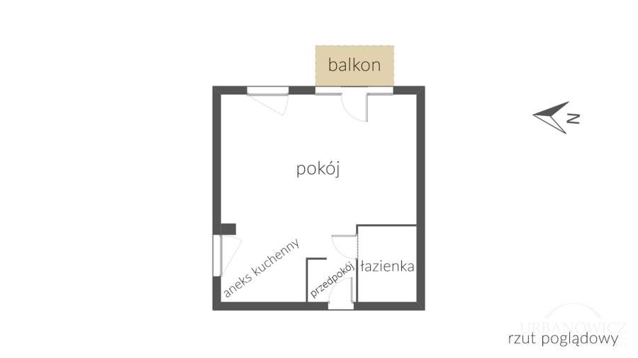 Apartament o pow. 33,62 m2 składa się z jednego pokoju z aneksem kuchennym, łazienki z kabiną prysznicową oraz przedpokoju.