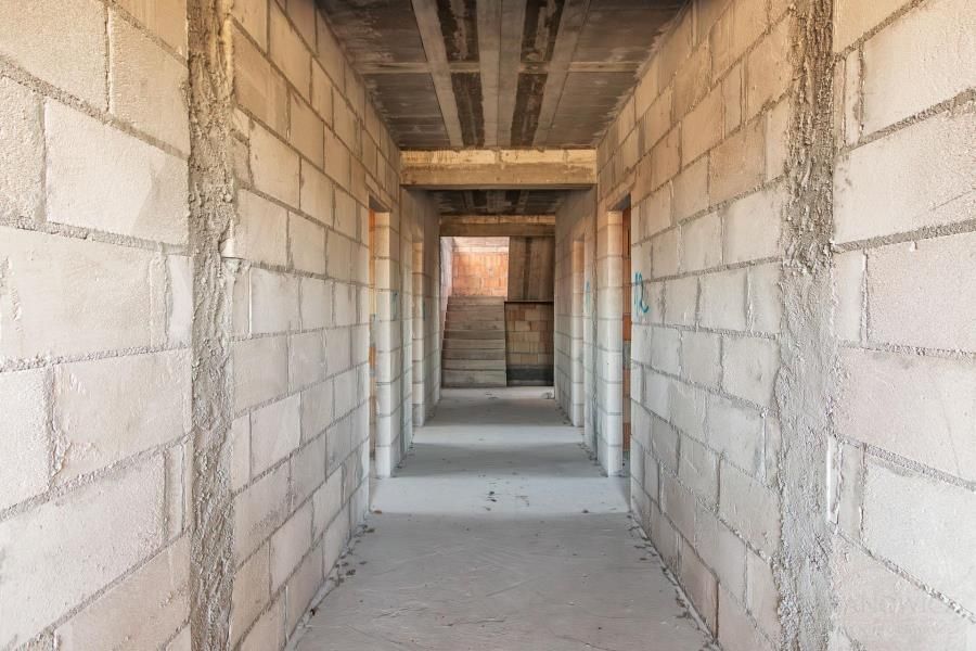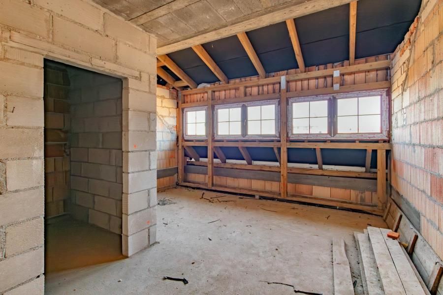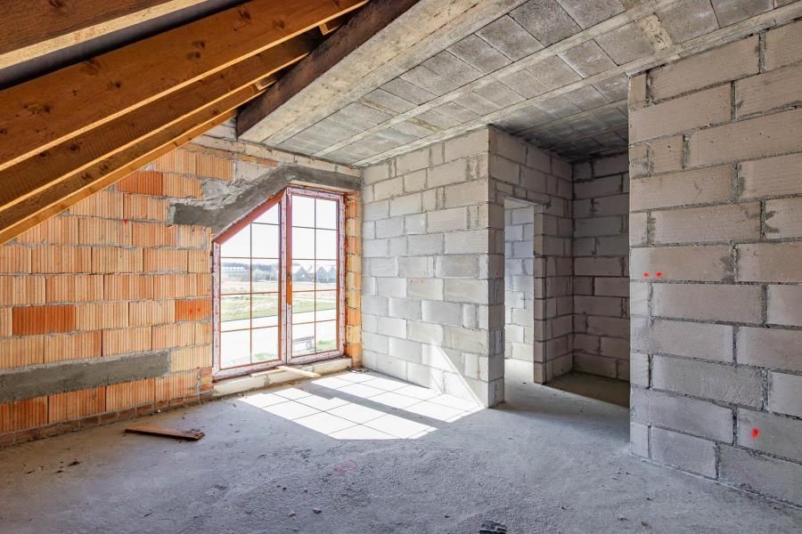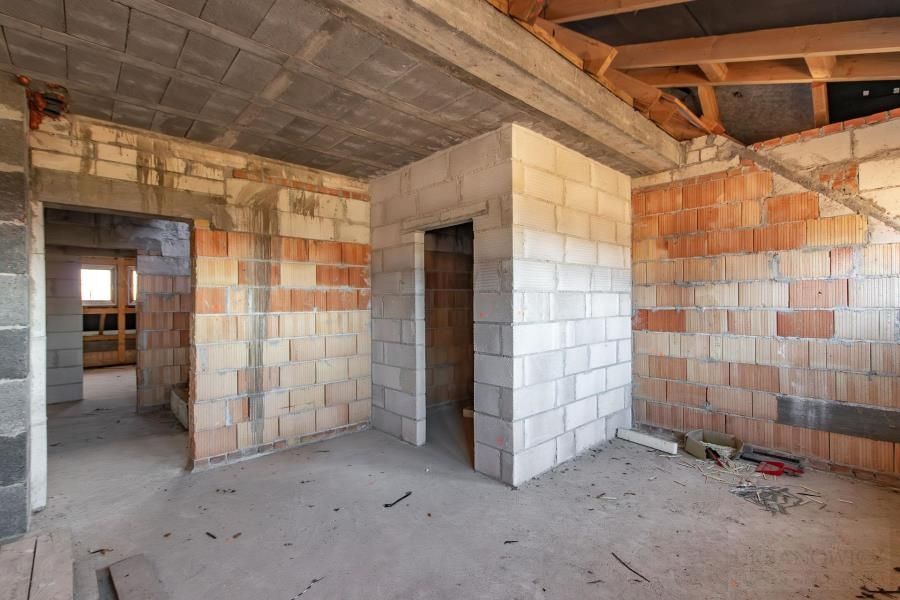 - Piętro: 6 pokoi z łazienkami – zaawansowany stan deweloperski (gotowe łazienki, gładzie na ścianach)
