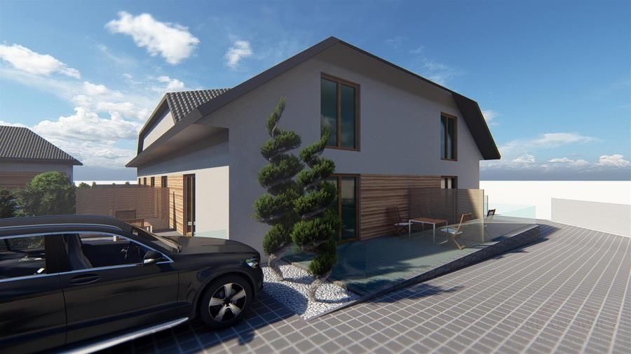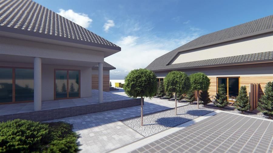 - Dach pokryty cementową dachówką, wyposażony w panele fotowoltaiczne z trzech stron świata