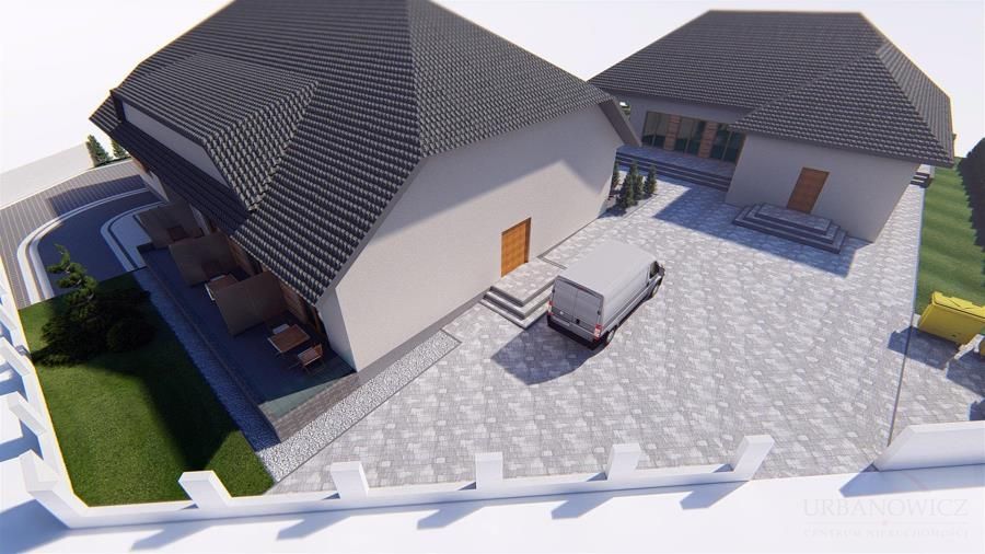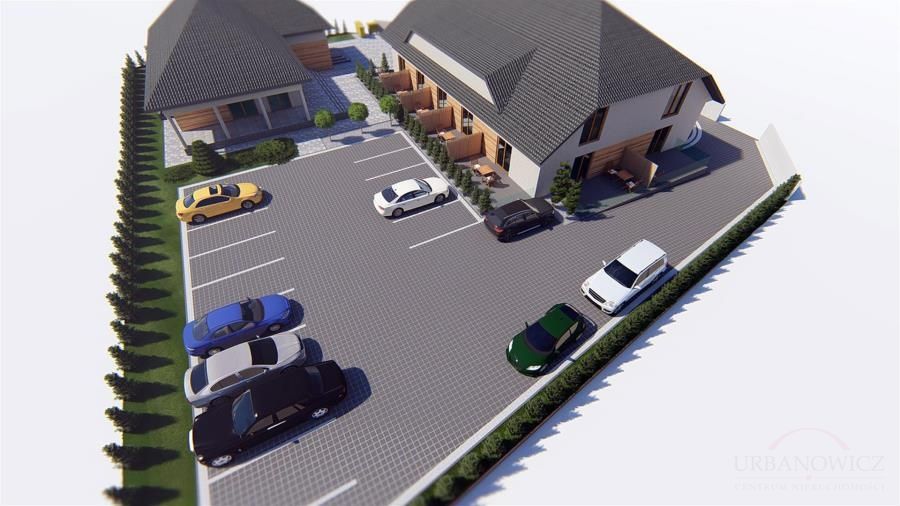 Działka o powierzchni 2100 m², zabudowana dwoma budynkami oraz utwardzoną nawierzchnią o pow. 300 m² (doskonałe miejsce na parking, ogródek gastronomiczny lub strefę rekreacyjną).