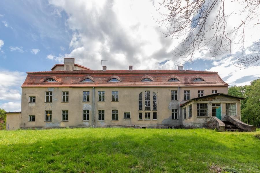 Budynek otacza park krajobrazowy wpisany do rejestru zabytków) w którym znajduje się staw oraz strumyk.