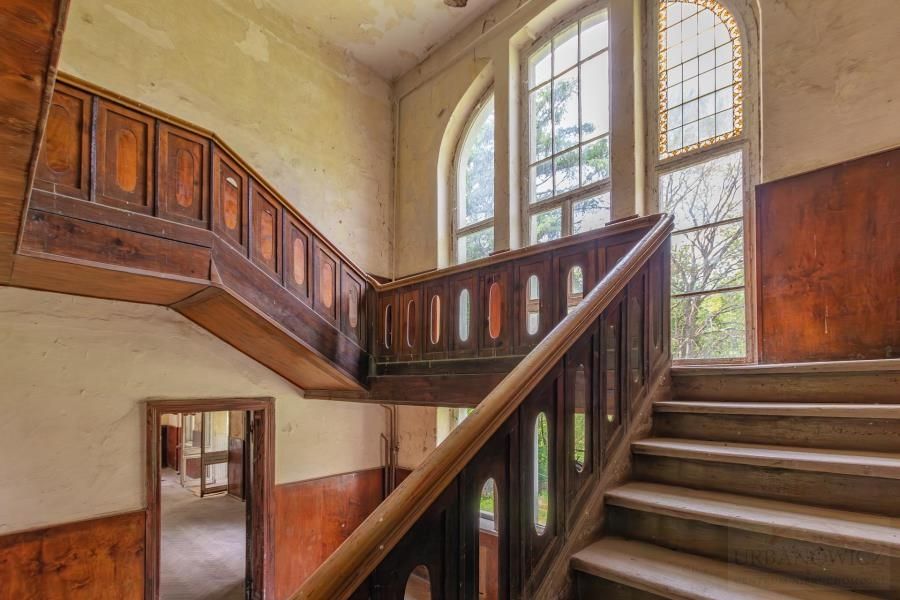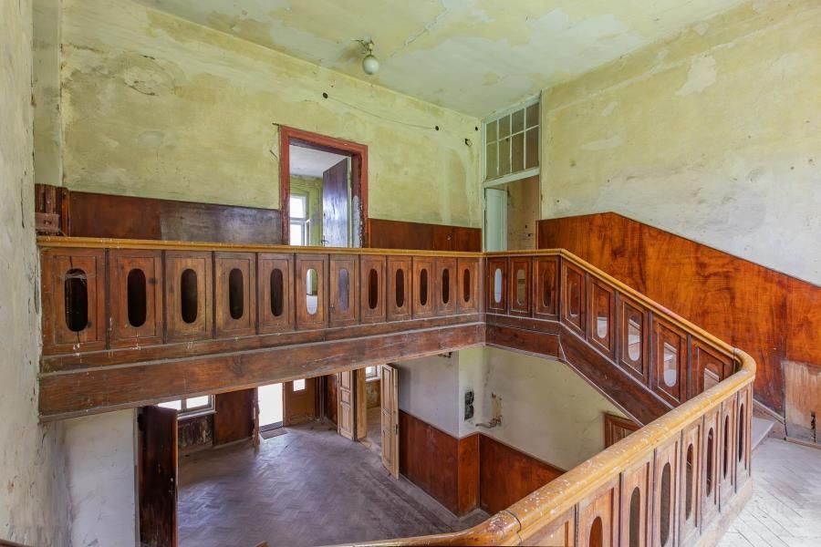 W niezmienionej formie pozostał cały hall główny z boazerią i ozdobną podbitką na suficie.