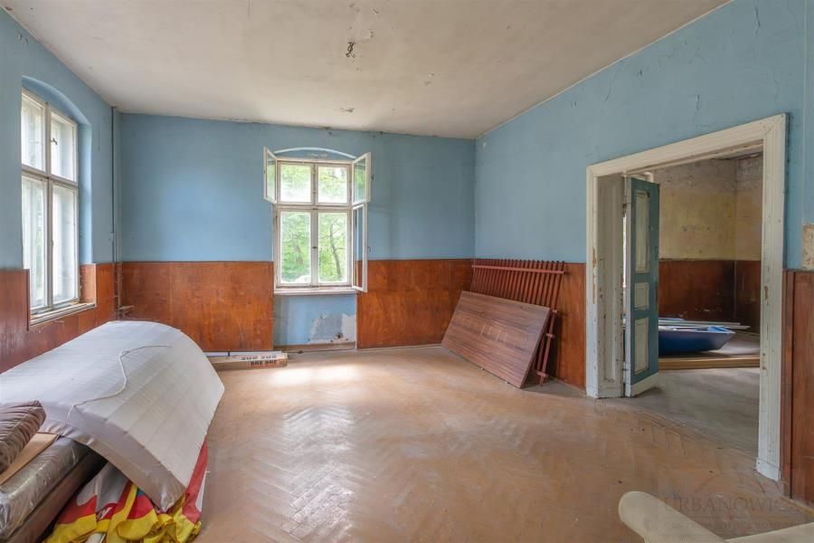 Budynek otacza park krajobrazowy wpisany do rejestru zabytków) w którym znajduje się staw oraz strumyk.