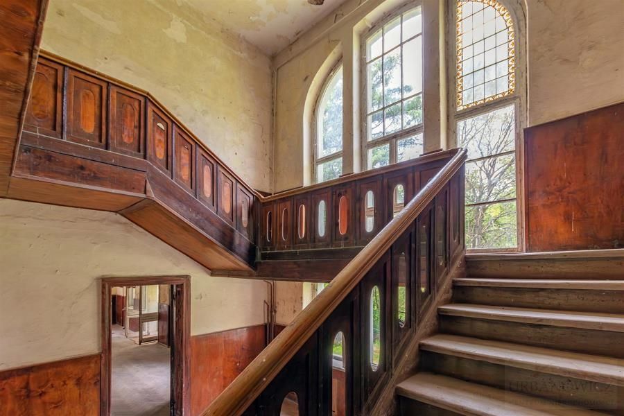 Technologia budowy: murowany z cegły, dach mansardowy kryty dachówką.