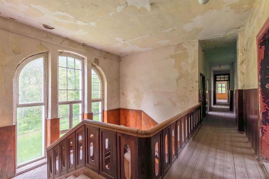 W niezmienionej formie pozostał cały hall główny z boazerią i ozdobną podbitką na suficie.