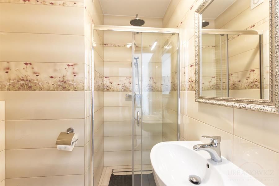 - I piętro: trzy ustawne pokoje oraz dwie łazienki – wygodna przestrzeń dla rodziny lub gości.