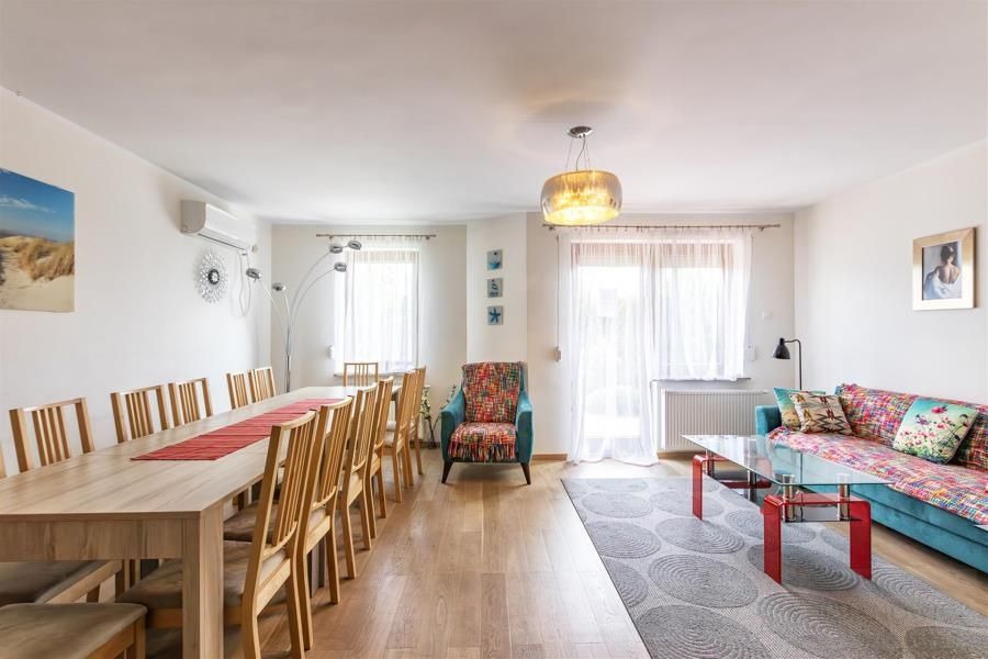 Dom w zabudowie szeregowej o pow. użytkowej 148,7 m², położony w nadmorskiej miejscowości Mielno, w odległości zaledwie 800 metrów od plaży.