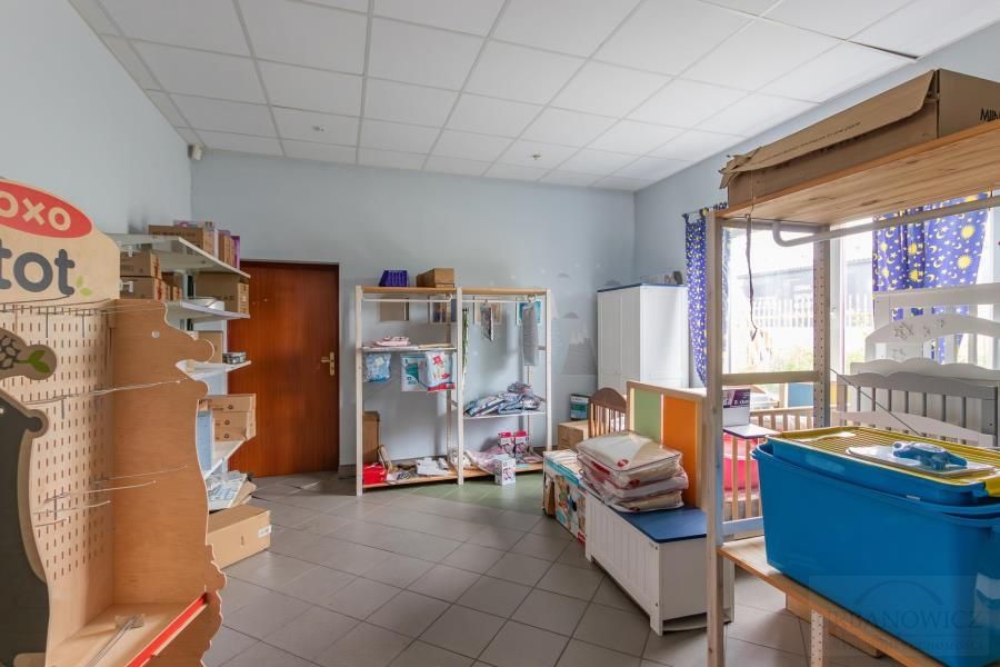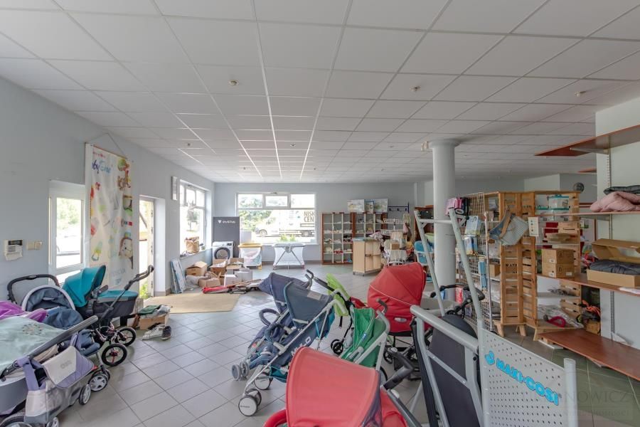 W lokalu usługowym okna i witryny wystawowe PCV, na podłogach terakota, ogrzewanie podłogowe.