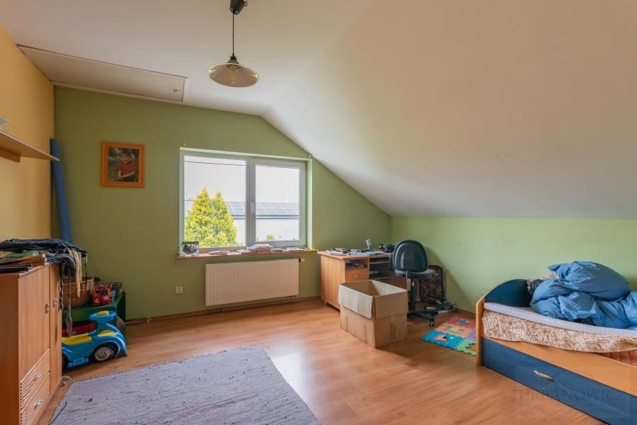 Budynek 2 kondygnacyjny z poddaszem, murowany, ocieplony styropianem, dach pokryty blachą Lindab.