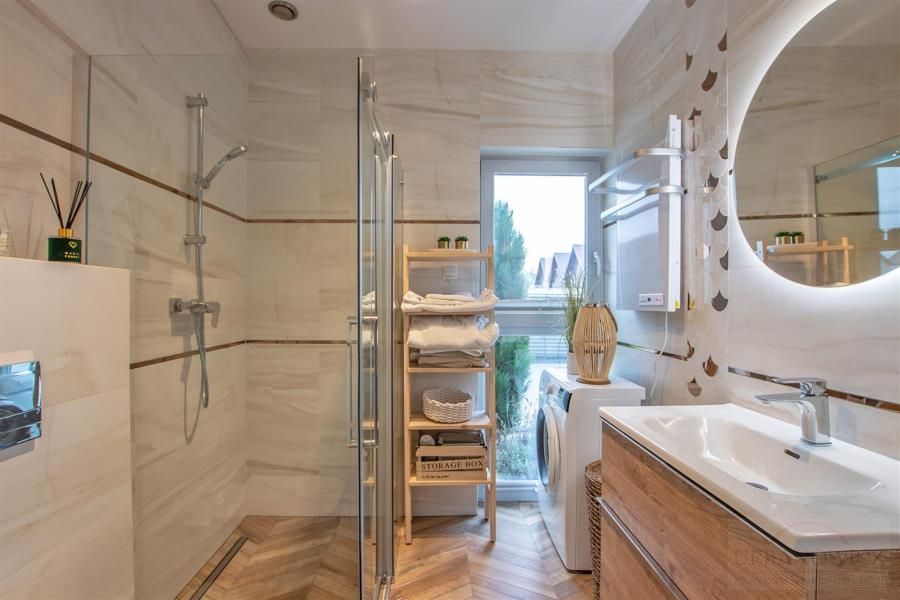 - Dom wykończony w wysokim standardzie, w nowoczesnym stylu z elementami marynistycznymi.