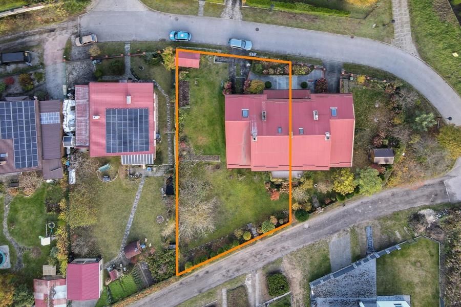 Działka o pow. 696 m2; ogrodzona i zagospodarowana (trawniki, nasadzenia, polbruk).