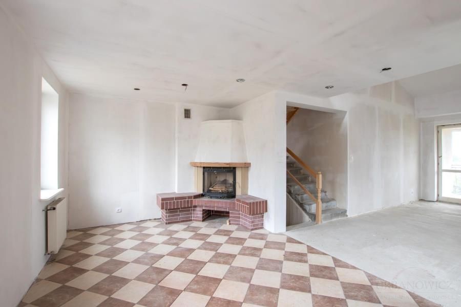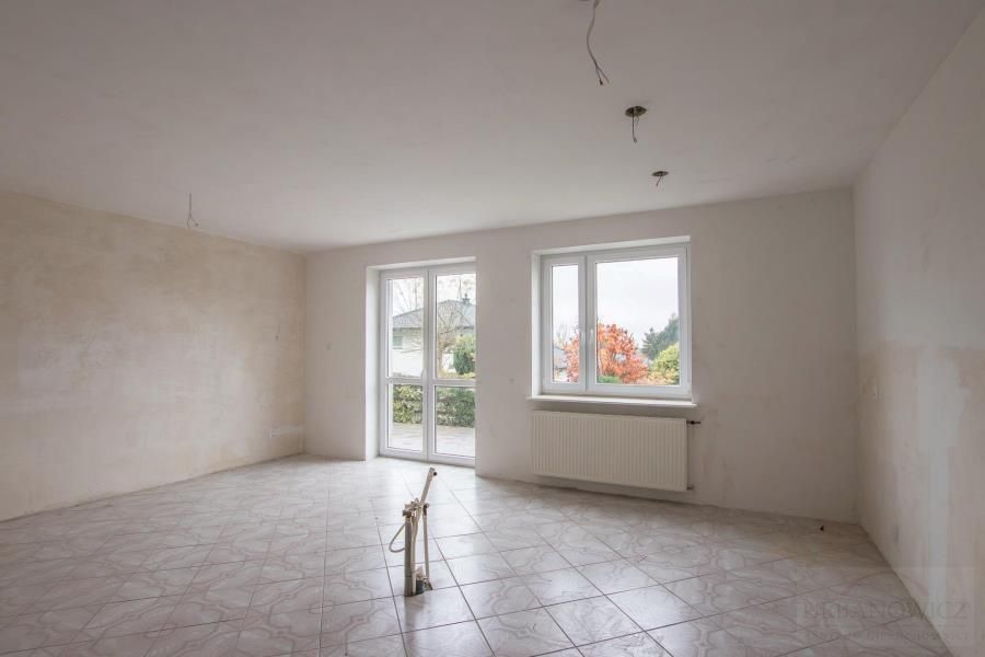 Budynek mieszkalny z garażem w zabudowie bliźniaczej do wykończenia wewnątrz.