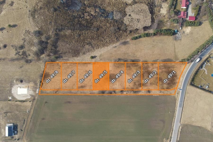 Działka położona przy drodze wewnętrznej; udział 1/8 części w cenie działki.