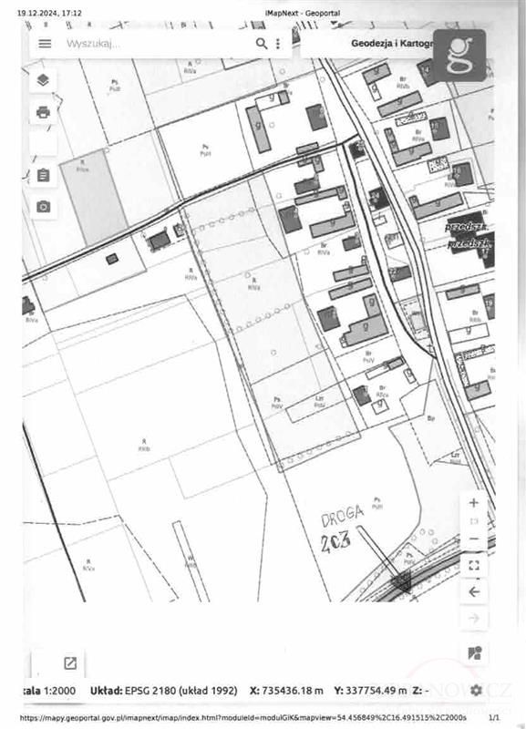 Opisywana działka znajduje się w odległości ok. 600 m od drogi 203.