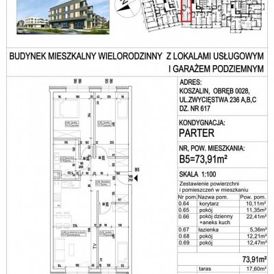 Mieszkanie 4-pokojowe, o pow.73,91 m2, na parterze, z tarasem (17,60 m2) - (zobacz plan mieszkania). Mieszkanie jest sprzedawane w stanie deweloperskim, do wykończenia.
