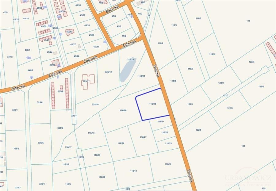 Lokalizacja działki przy ul. Wiejskiej (o nawierzchni szutrowej).