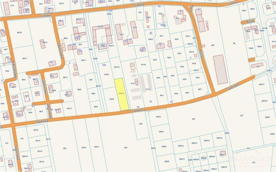 Zalecany dojazd do działki: od ul. Strażackiej lub ul. Jaśminowej w ul. Topolową.