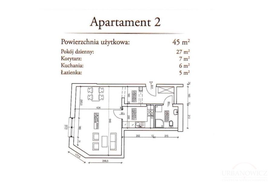 APARTAMENT NR 2/3 (3 piętro) składa się z pokoju dziennego 27 m2, korytarza 7 m2, osobnej kuchni 6 m2 oraz łazienki 5 m2.