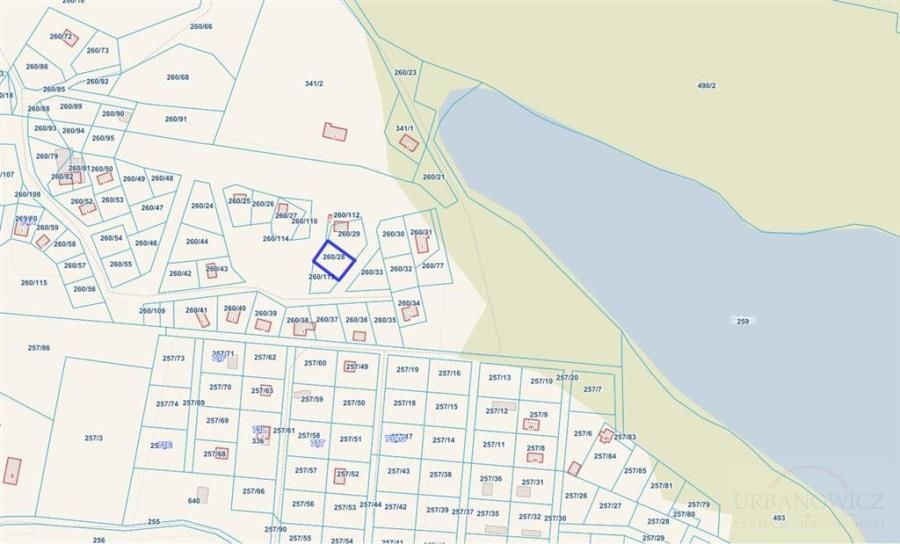 Działka znajduje się w sąsiedztwie pojedynczych domów rekreacyjnych.