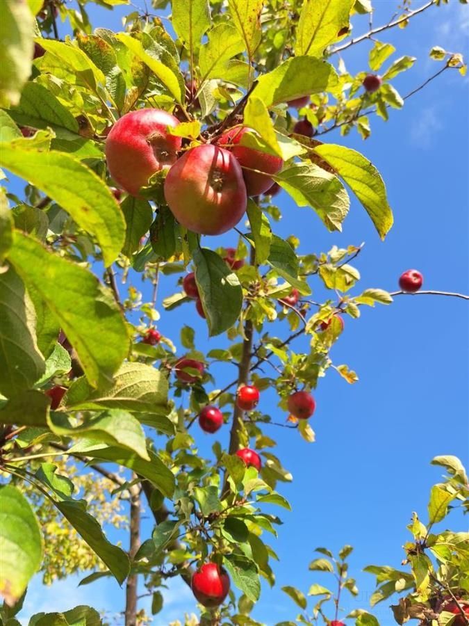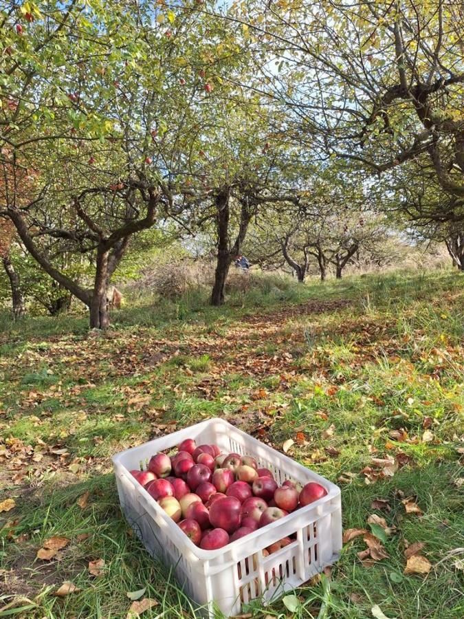 Część działki jest porośnięta starym sadem owocowym założonym w 1970 r. Znajdują się tam dwa rzędy starych odmian jabłoni, m.in. Antonówka, Spartan, Malinówka Oberlandzka, Reneta, Jonatan. Jesienią można zbierać ekologiczne jabłka. Istnieje możliwość wycięcia drzew owocowych, co nie wymaga pozwolenia.