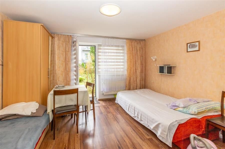 Przyziemia: przedpokój, 2 niezależne pokoje z wyjściami na ogród, aneks kuchenny, łazienka, osobne wc, kotłownia i garaż,