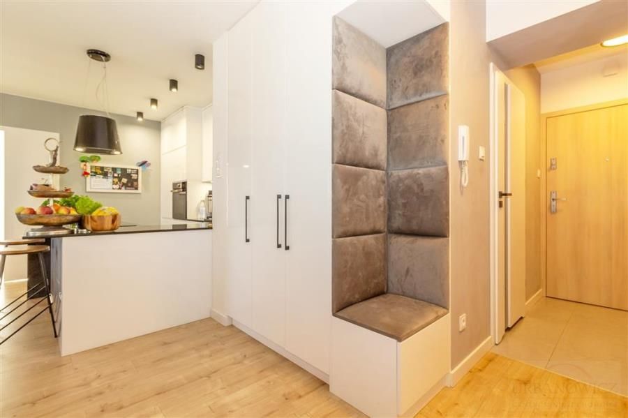 Mieszkanie wykończone materiałami o wysokiej jakości. Na podłogach panele, na ścianach gładzie. Kuchnia pod wymiar wyposażona w piekarnik, płytę indukcyjną, zmywarkę, lodówko-zamrażarkę. W przedpokoju duża szafa typu Komandor. W cenie nieruchomości zostają meble w zabudowie oraz sprzęt AGD.