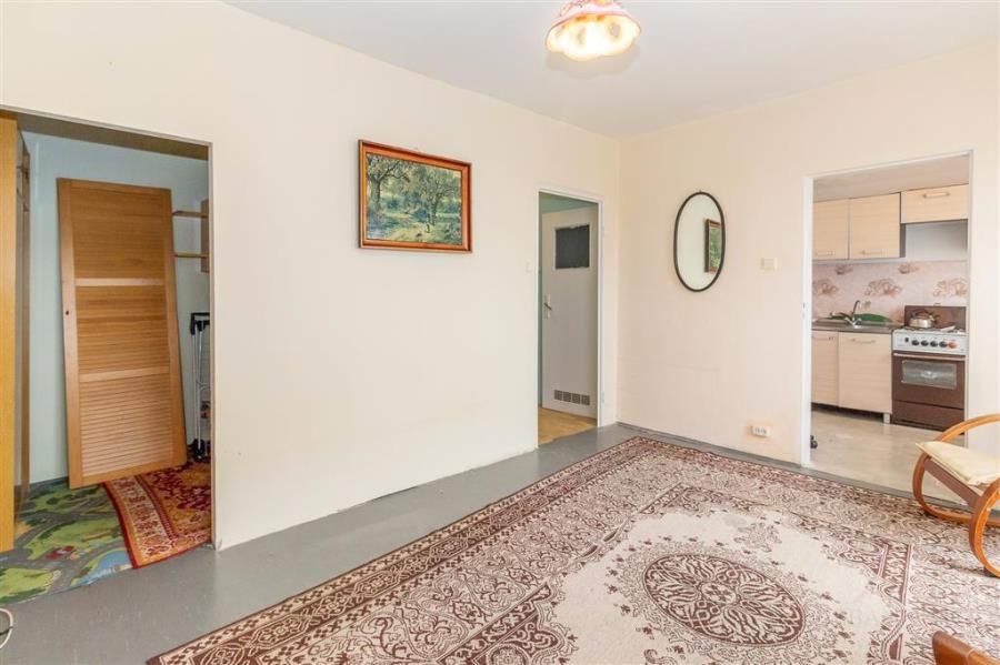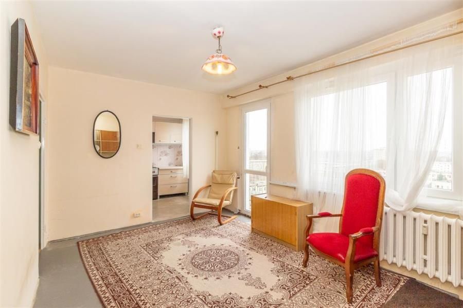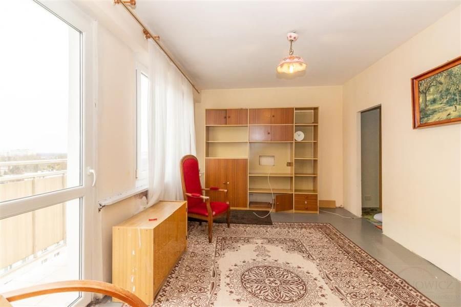 Mieszkanie położone jest na 9 piętrze w 10-piętrowym bloku i składa się z przedpokoju, z którego wchodzimy do pozostałych pomieszczeń: pokoju z wyjściem na balkon, kuchni z oknem i łazienki - łączna powierzchnia użytkowa to 31,60m².