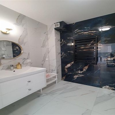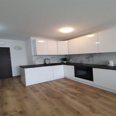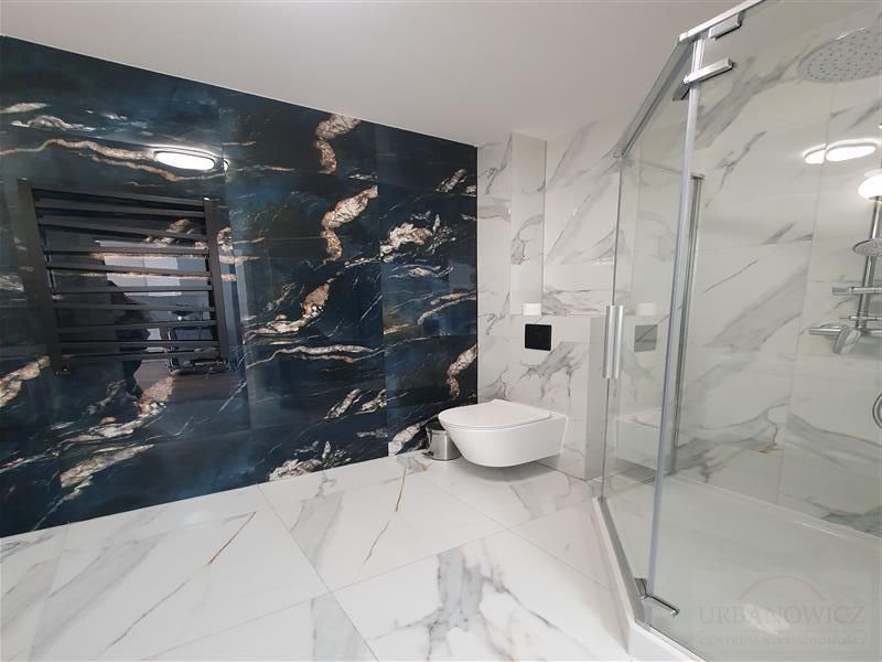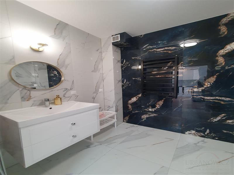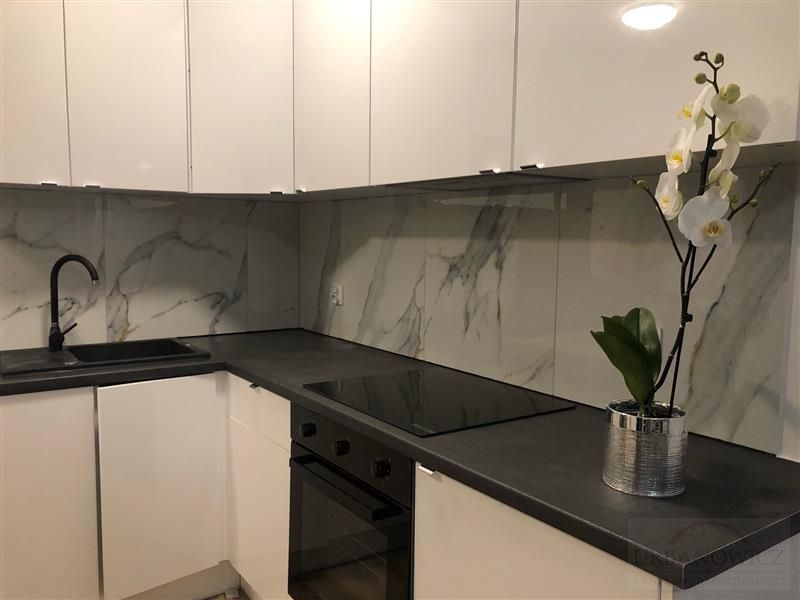 Umeblowany i wyposażony: kuchnia sprzęt AGD tj: zmywarka, piekarnik, płyta grzewcza, kuchenka mikrofalowa; łazienka kabina prysznicowa, geberit i szafka z umywalką.