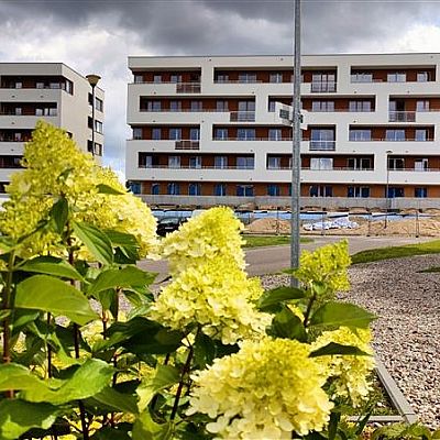Lokal mieszkalny o powierzchni 35,5m2, usytuowany na I piętrze w czterokondygnacyjnym budynku. Składa się z salonu z wyjściem na taras, aneksu kuchennego, sypialni oraz łazienki z wc.