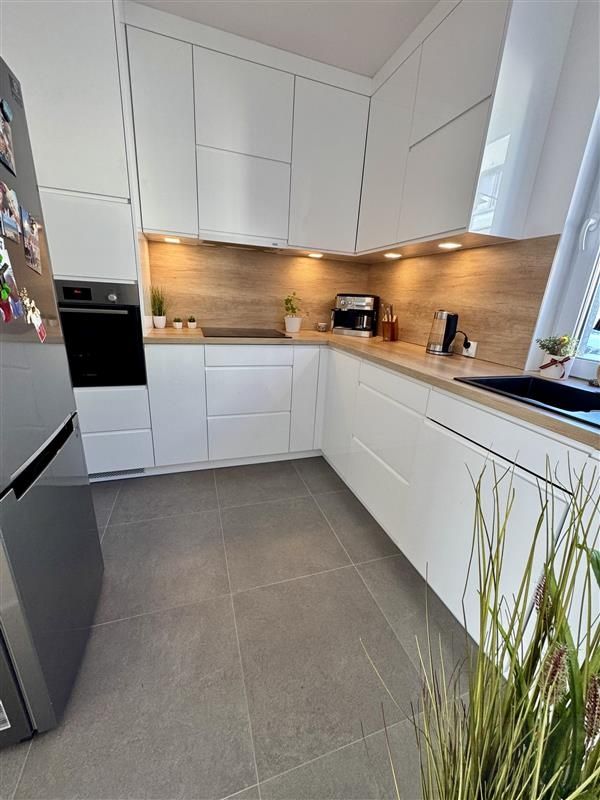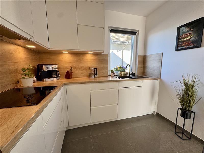 - Oddzielna kuchnia (7,23m2) wyposażona w nowoczesne meble w zabudowie, które zapewniają dużo miejsca do przechowywania. Funkcjonalny układ oraz klasyczne wykończenie sprawiają, że kuchnia jest zarówno estetyczna, jak i wygodna w codziennym użytkowaniu. W skład wyposażenia wchodzi niezbędny sprzęt AGD (płyta grzewcza, piekarnik, lodówka, zmywarka oraz okap). Dzięki obecności okna wnętrze jest doskonale doświetlone i dobrze wentylowane.