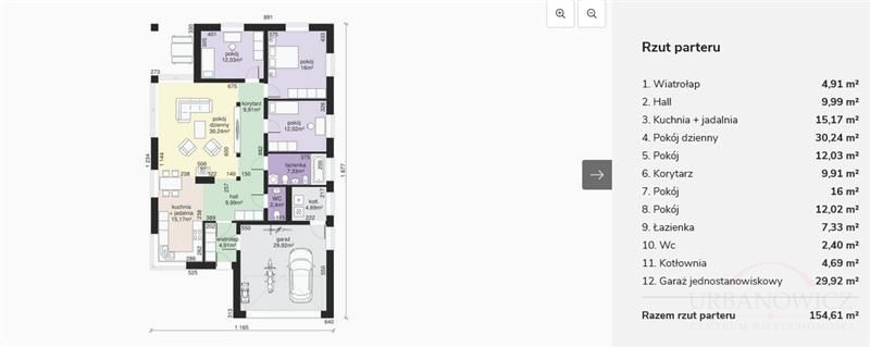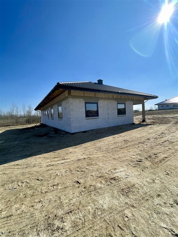 Dom parterowy 154,61 m² – stan surowy zamknięty, wolnostojący, 3 sypialnie, duża działka, duży garaż – OKAZJA!