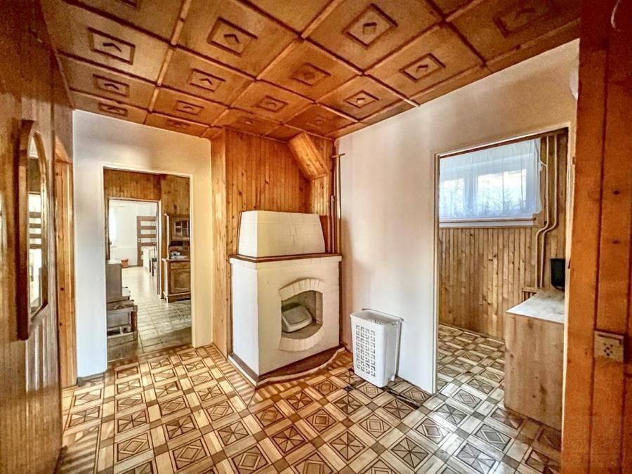 Posiada płaski dach pokryty papą, okna PCV, 3-letni piec gazowy, żeliwne grzejniki oraz aluminiową instalację elektryczną.