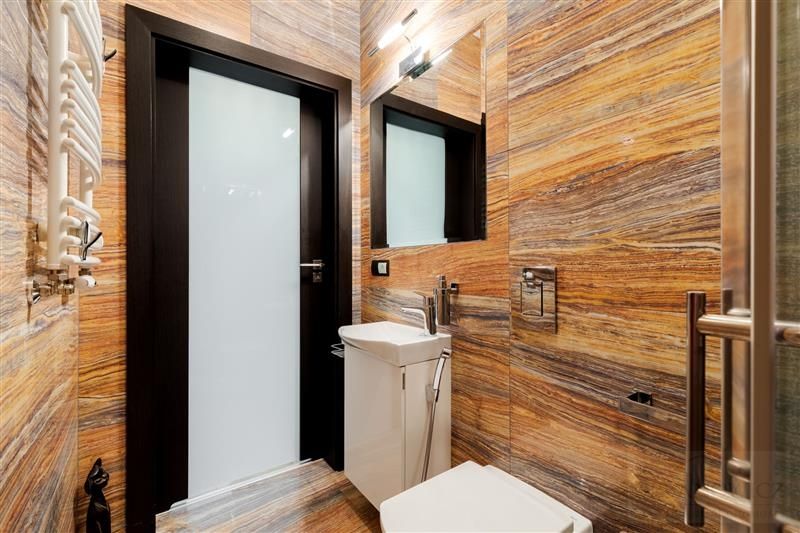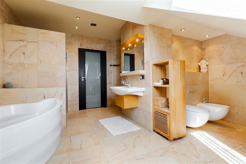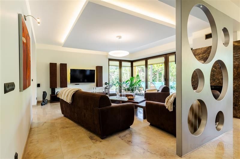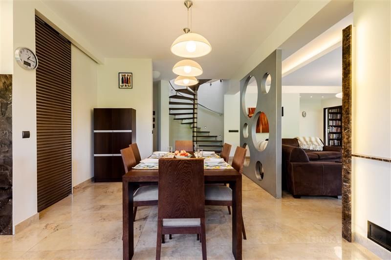 9. Elektryczna i RTV – tablica główna elektryczna w garażu z zabezpieczeniem     przeciwporażeniowym i szafką pomiarową usytuowaną w ogrodzeniu, wszystkie kable i przewody miedziane z osprzętem Legrand, wyposażona w gniazda zewnętrzne przy  garażu, rondzie, tarasie i na ogrodzie oraz oświetlenie w podbitce z włącznikiem zmierzchowym, szafka RTV ze wzmacniaczami w pralnio – suszarni i rozprowadzeniem do wszystkich pokoi.